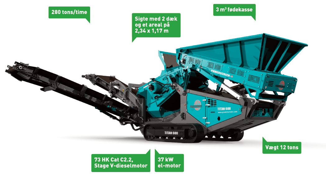 Du kender måske allerede Titan 600 – Powerscreens klassiker, som er øverst på hitlisten i Danmark og kan sortere op til 280 tons materialer i timen. Nu kan du også få anlægget i en hybridversion!